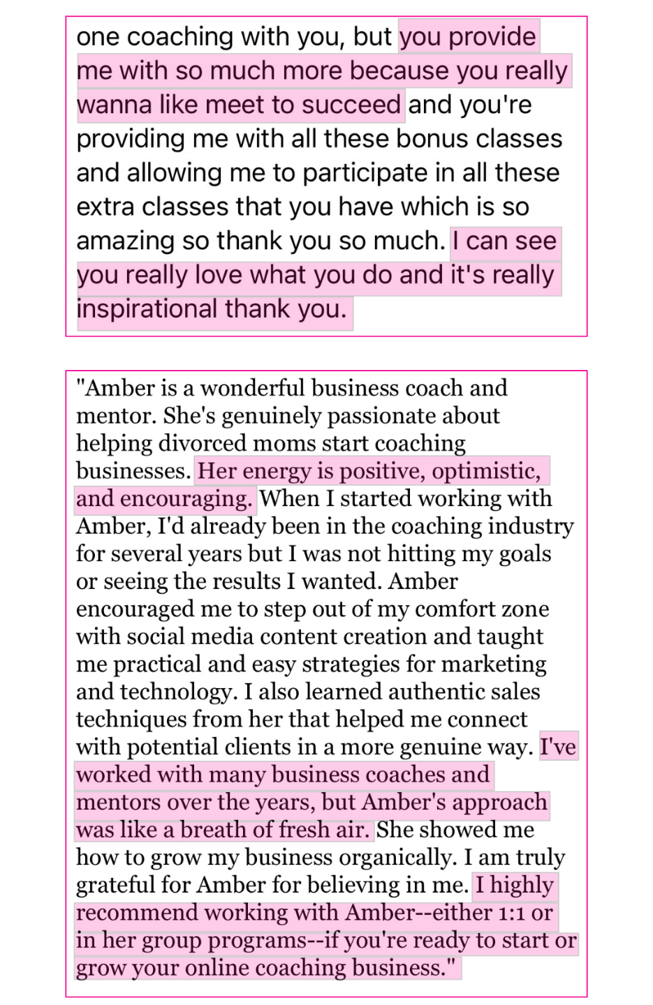 You’ll join a circle of divorced moms walking the same path. Get 24/7 feedback, find accountability partners, celebrate wins, and access Amber directly between calls. A judgment-free zone for real talk, real support, and real growth.